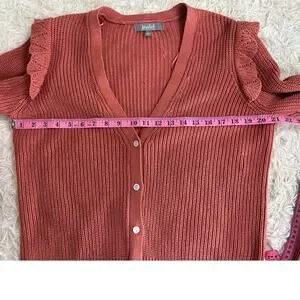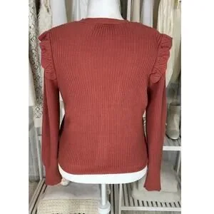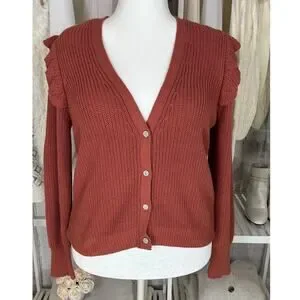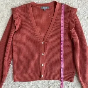 Marled Reunited Clothing Women's Sz L Mauve Ruffle Shoulder Cardigan