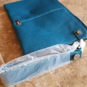 Stylish turquoise textured clutch/ wristlet. Perfect for any occasion.