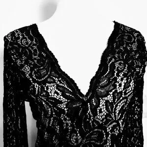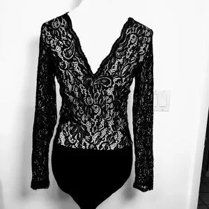 EXPRESS SIZE M LONG SLEEVE BLACK EMBROIDERED LACE BODYSUIT