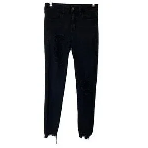 American Eagle size 4 Short High Rise Jegging Next Level Stretch Distress Jeans Black