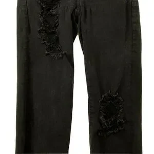 Good condition with the exception of the intentional distressed destroyed areas on the fronts of the legs. Some puckering across the crotch area.