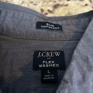 Elevate your wardrobe with this stylish flex washed, slim untucked fit, blue shirt from J. Crew. Perfect for any occasion, this shirt combines comfort and elegance. Gently worn. Excellent condition. Size large. Free shipping.