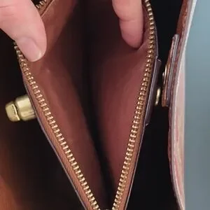 gently used with some wear on hardware, shown in pictures. In great condition and from a smoke free home. Includes crossbody strap