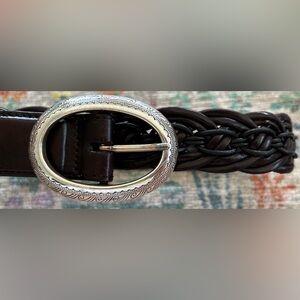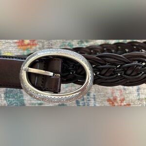 Brighton Ladies Brown Leather Bangkok Weaver Belt, Silver Engraved Buckle