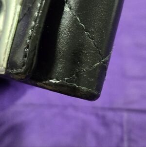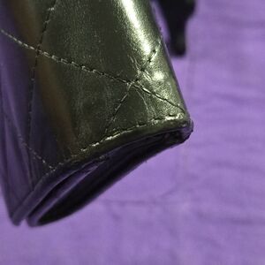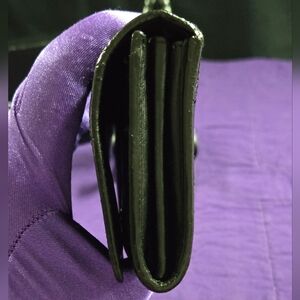 The exterior of the wallet is in excellent condition. The flap snap closure works well. There is a very small crease on the top of the wallet, where it bends when opened which is normal for preloved wallets.
