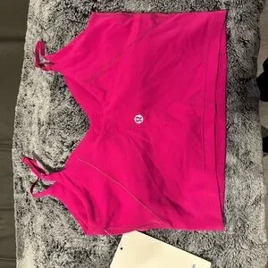 Bright pink crop top with adjustable straps. Perfect for casual wear.