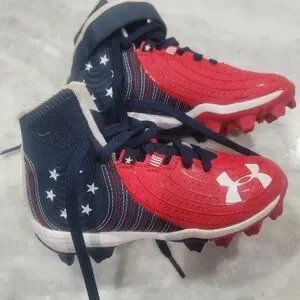 Excellent condition Under Armour high top,velcro youth cleats. Almost new condition. Size 1K. Insides are very clean and sanitized.