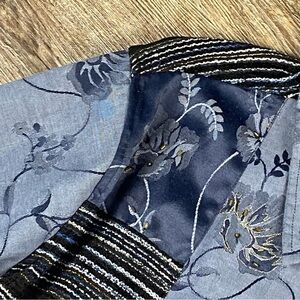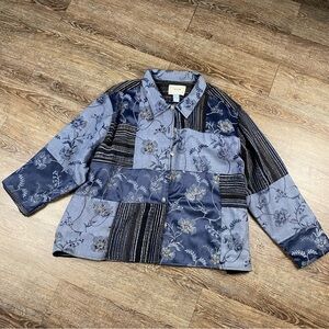 Vintage TANTRUMS Coat Women 3X Blue Patchwork Floral Beaded Viscose Art To Wear