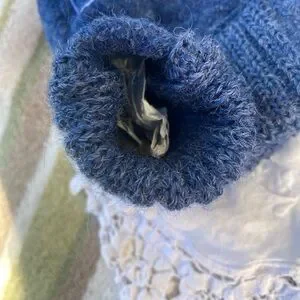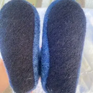Adorable blue baby booties featuring a heart design. Perfect for keeping little feet warm.