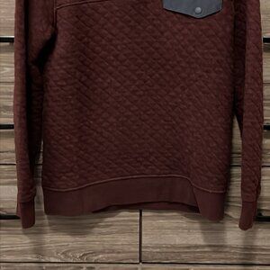 Great condition! No holes, tears, or stains. Does have some light pilling. Color is Geode Purple (Dark Maroon) with Dark Grey accents.