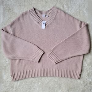 (sold) BUNDLE x2: 100% cotton knit oversized v-neck beige + strawberry pink, L