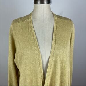 Great used condition. Size XLarge. Has a stain on the front. No rips or tears. 100% linen, long sleeve, open front. B4