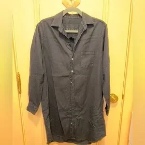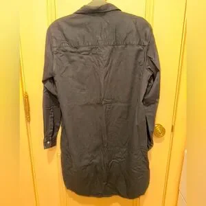 Stylish black button-up shirt dress by Frank & Eileen. Features a classic collar and chest pocket.