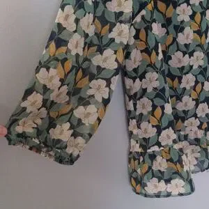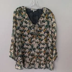 EUC✨ DANIEL RAINN navy women's XL Camila Ruffle Detail 3/4 sleeve Blouse