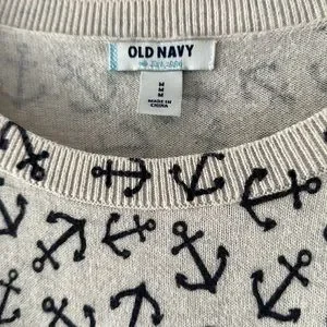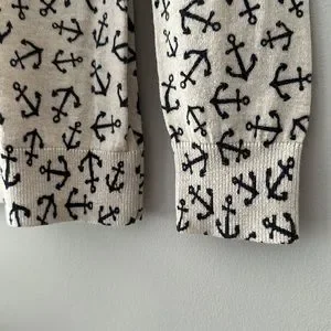 ⚓️ ANCHORS AWAY Adorable coastal sweater with blue anchors on cream background M