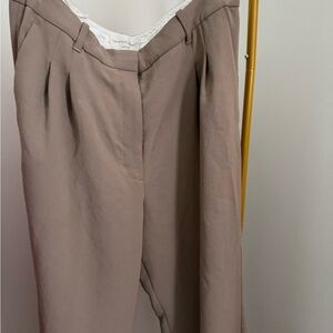 These Aritzia wide-leg pants in a sophisticated gray hue offer a minimalist design with a relaxed fit. The full-length cut and smooth fabric create an elegant drape, perfect for professional or formal settings.