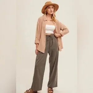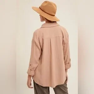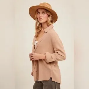 #H1 Crinkle Gauze Button Down Shirt 🤎