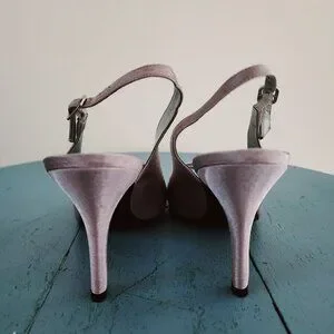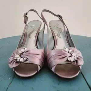 The Touch of Nina Velato Women's Silver Heels Satin W/ Gem Rhinestone Size: 7.5