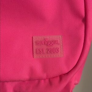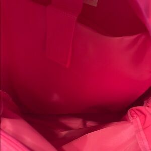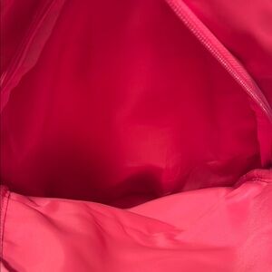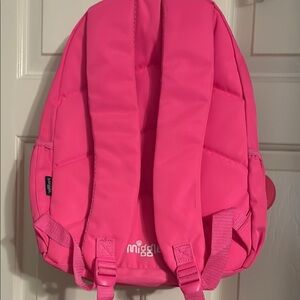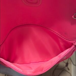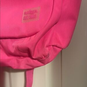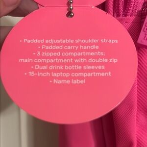 Hot pink water resistant backpack with 15" laptop pocket. 3zippered pockets. It does have a few marks on it as seen in pics from being stored and I have not tried to clean. It is new with tags. Perfect for daily use.