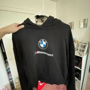 This cropped black sweatshirt hoodie from Puma offers a relaxed fit, perfect for casual wear. Crafted with a focus on comfort, it features a classic design that embodies Puma's sporty aesthetic. The sweatshirt is ideal for those who appreciate a blend of style and comfort in their wardrobe.