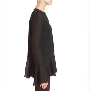 Theory Long Sleeve Blouse with Silk Peplum Hem size Large