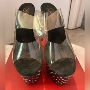 Pleaser Stardust Black Rhinestone Platform heels.