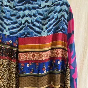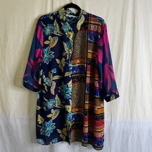 Rose & Olive Floral Colorful Button Up 3/4 Sleeve Relaxed Blouse/Top Size 1X