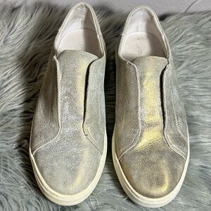 Step out in style with these chic metallic silver slip-on shoes. Perfect for any occasion, these shoes offer both comfort and elegance.