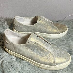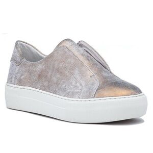 J Slides Alara Metallic Leather Platform Slip-On in Metallic Silver Size 8.5