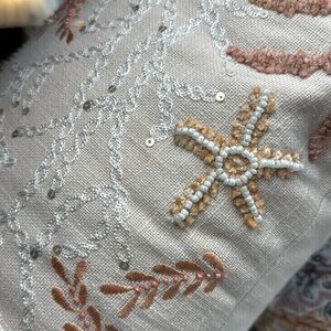 NEW Large Coastal Hand Embroidered w beads & Sequins Lumbar Pillow Beach Boho
