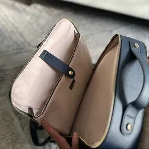 @callieali hi there! Thanks for your interest. A bit of the blue leather piping came off and has been glued back. As you can see from the first pic, it’s not noticeable.