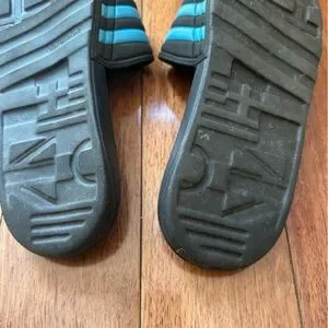 Adidas Youth Size 6 Black and Blue Adissage Slides. In good condition as some wear. Still life left in them.