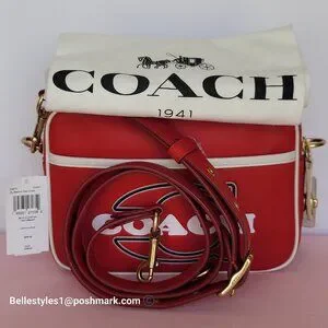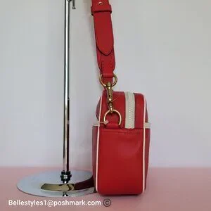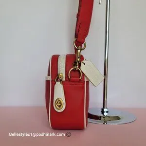 BRAND NEW WITH TAGS. Electric Red/Chalk color. A sporty Unisex camera style crossbody bag with top zip-closure with enough room for your small essentials. Crafted of colorblocked glovetanned leather with COACH stamp at the front. Features a front slip pocket and a back-slip pocket for easy access and added convenience. Comes with one leather strap 1.2” width for comfortable shoulder or crossbody wear.