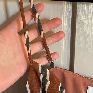 Astr Brown Green White Bodysuit with Vertical Stripes Flattering Flowy Tank NWT