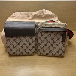 This Gucci Fanny Pack is a versatile accessory that adds a touch of elegance to any outfit. With its adjustable strap and zip closure, it's perfect for carrying your essentials on the go. The monogram canvas material and brown color make it a timeless piece that will never go out of style.