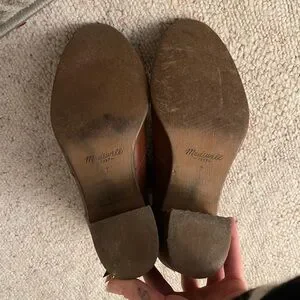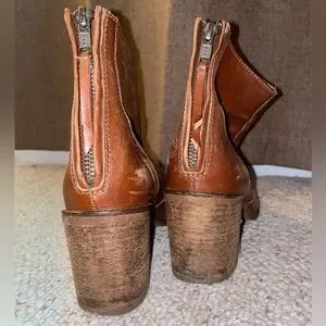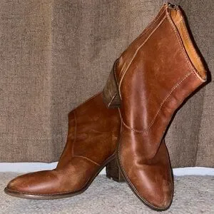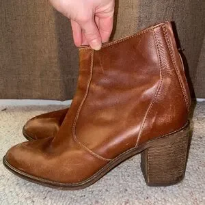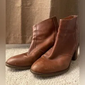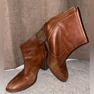 Madewell Brown Ankle Boot with Chunky Heel Western Leather Comfy Zip Up Cowgirl