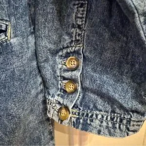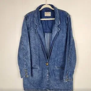 Very relaxed and chill denim blue jacket perfect for casual outings. Features a classic blazer design with buttons and pockets but spun in a cooler way. Very oversized.