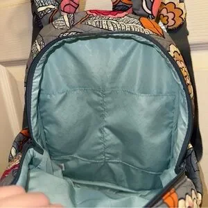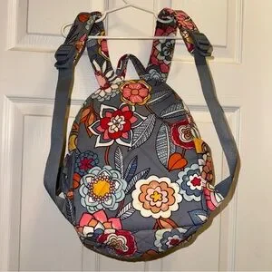 This Vera Bradley backpack is a must-have for any occasion. With a beautiful floral pattern and gray accents, it is perfect for travel, parties, workwear, and casual outings. The bag is made of microfiber, cotton, and cotton blend materials, and features a polyester, nylon, and fabric lining.