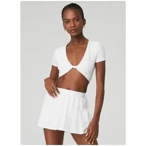 Alo Ribbed Knotty Short Sleeve | White | S