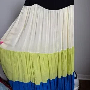 Experience the height of summer elegance with the Kate Spade New York Women's Bow Solids Tiered Midi Dress, a tiered, color-blocked masterpiece with adjustable straps.