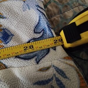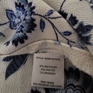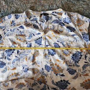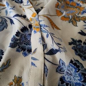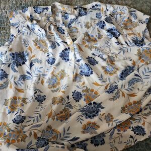 Elegant women's blouse featuring a beautiful floral print. The blue and gold colors add a touch of sophistication to your wardrobe. The blouse comes from a smoke-free and dog friendly home