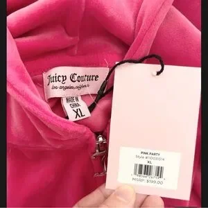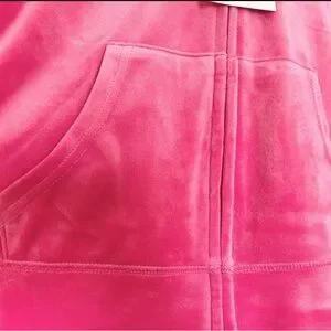 Experience the plush comfort of Juicy Couture's pink velour track pants, designed with a relaxed fit and an elastic waistband for easy wear. These track pants, part of the iconic Pants & Jumpsuits collection, offer a soft texture and a slight sheen, perfect for a casual yet stylish look. Ideal for lounging or a casual outing, these pants embody the classic Juicy Couture style.
