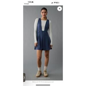 American Eagle It Knit Blue Checkered Pinafore Pleated Mini Dress XL NWT