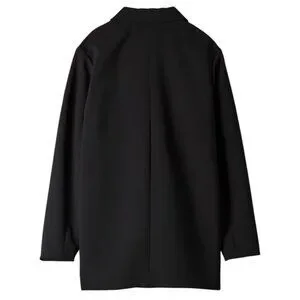 This is a relaxed-fit, double-breasted blazer with a notched lapel and butterfly lining. It's made with drapey, Japanese matte suiting fabric.