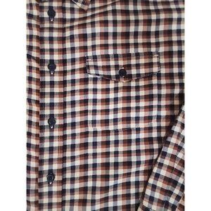 Patagonia Long Sleeve Organic Cotton Shirt Men Large Plaid Check Button Navy Brn