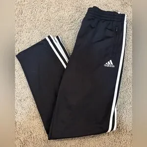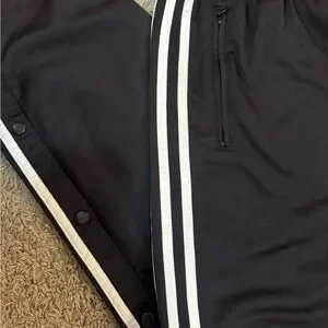 🖤🤍adidas • VINTAGE RETRO • unisex black w/ white trim breakaway sweatpants w/ zippered pocket on either side • XL • EUC