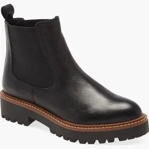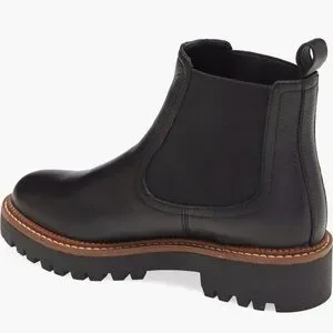 Brand new Chelsea boots. These Caslon ankle boots feature a sleek black leather upper with elastic side panels for easy slip-on wear. The chunky, rugged sole with a contrasting brown midsole offers a modern twist on the classic Chelsea boot style, providing both style and practicality for everyday wear.