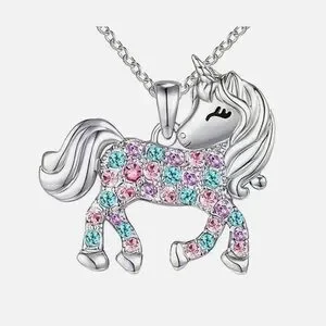 Silver Rhinestone Unicorn Pendant Necklace