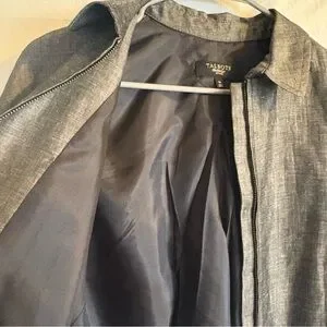 Talbots Linen Blend Grey Full Zip Jacket Size 6 Petite Career Office Work Lined