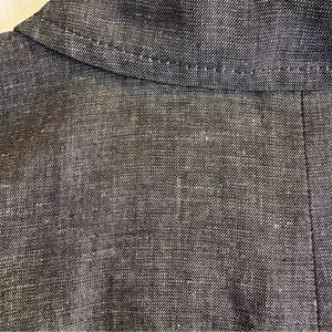 Features: linen blend material- 55% linen/29% viscose/16% polyester, dry clean only, full zip, collared, chambray material, lightweight